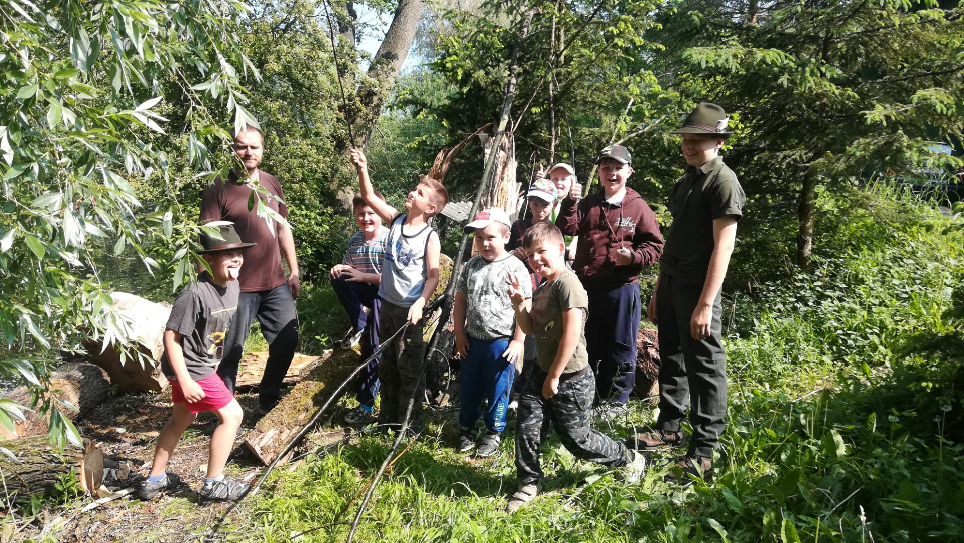 S velkými vymýšlení otázek na hru "bažant" a zvířecí rodiny. Hraní bažanta, kuny a hledání zvířecích rodin. Střílení z luku.