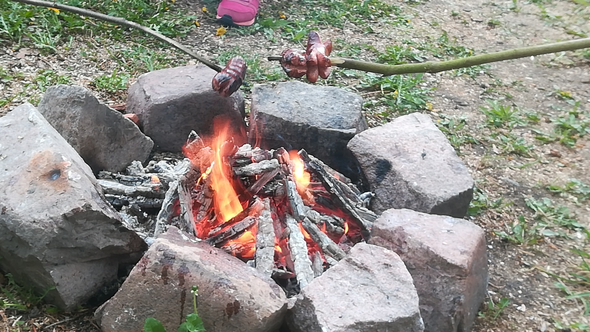K večeři jsme opékali špekáčky. S Pavlíkem děti pozorovali nutrie na Skále a několikrát v noci obešli myslivnu. Někteří skoro až do rána udržovali oheň v ohništi.