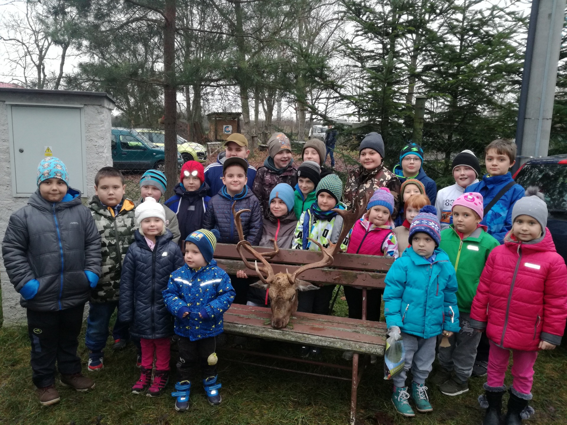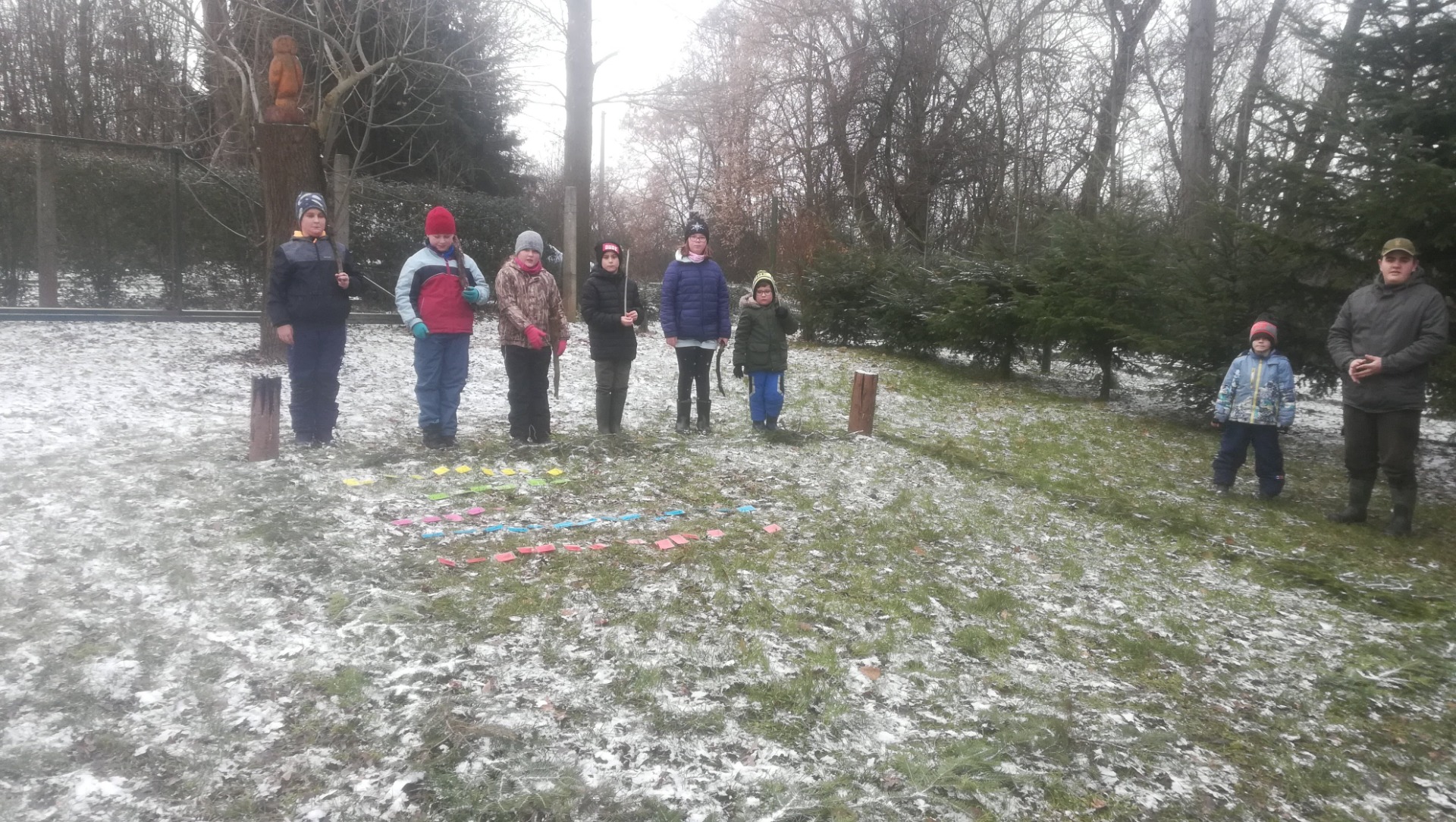 Celá akce byla k velké radosti dětí zakončena na dvoře myslivny, protože začal padat sníh. Dočkali jsme se i sněhuláka.