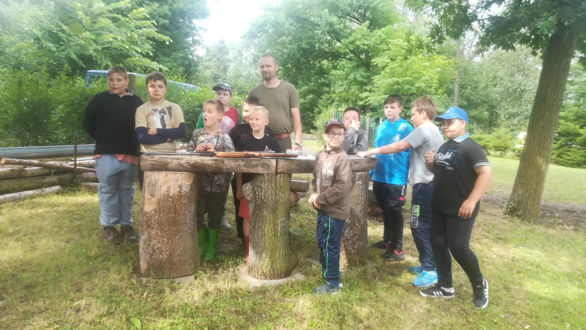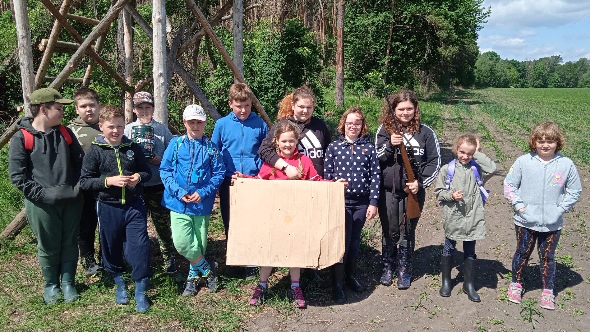 Dnes jsme pomáhali se stavbou kazatelny. Popsali jsme si malorážku a zkusili si vystřelit. Uspořádali jsme závod o nejrychlejšího hlemýždě.