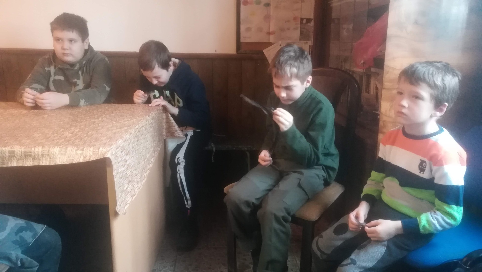 Opakování popisu srnce a bažanta, popis zajíce, typy srnčích parůžků, poznávačka rostlin v myslivně, procházka arboretem, pletení pomlázek.Na příště: kladívko, holinky.